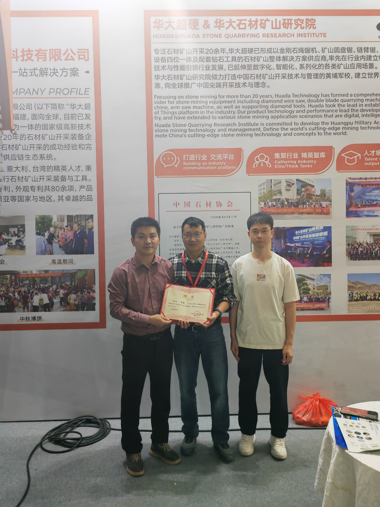 在展会期间,十大信誉举行了隆重的客座教授聘任仪式,聘任泉州富桥机械有限公司总经理刘勇富、福建锐丰源实业有限公司总经理吴小玉、泉州华大超硬工具科技有限公司总经理吴建、泉州市明星管理顾问有限公司总经理徐宗建为学校建筑材料工程技术专业客座教授。