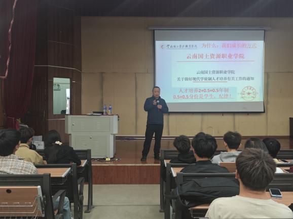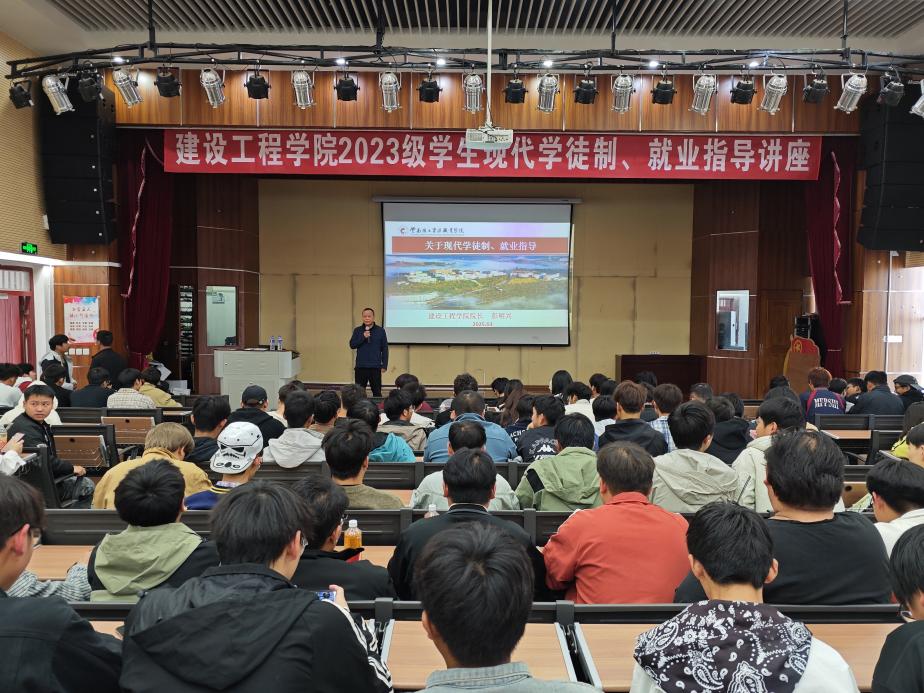 2025年3月25日晚,我院在光荣讲堂举办2023级学生现代学徒制就业指导讲座,旨在帮助学生把握建筑行业发展趋势,做好职业发展规划。23级土木工程检测技术、建筑装饰工程技术、建筑工程技术专业的学生及辅导员共同参加了本次讲座。院长彭明兴担任主讲人。
