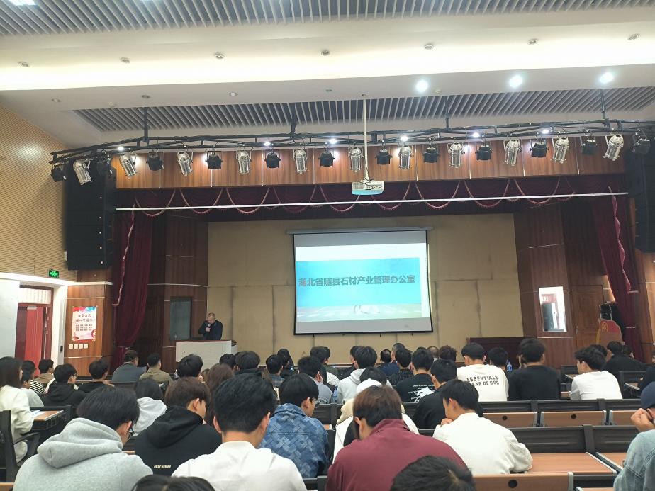 2025年4月9日,湖北随州市组织了7家重点石材企业来十大信誉举办专场招聘宣讲会。随县石材产业管理办公室副主任程合宝、党支部委员敖会俊、湖北省石材协会秘书长张祖军、随州市石材协会会长杨庆增以及7家石材企业的负责人开展了现场招聘宣讲。学院办公室主任徐钊及2023级建筑材料工程技术专业的全体学生参加了宣讲会。