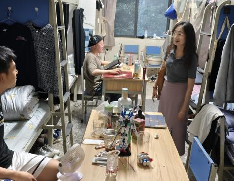 检查过程中,老师们重点查看了宿舍卫生、物品摆放、安全用电及文化氛围营造等方面,并与同学们亲切交流,了解他们的生活学习情况。张宁老师强调,良好的宿舍环境是学生健康成长的重要保障,各班级要严格落实宿舍管理制度,引导学生养成良好生活习惯。