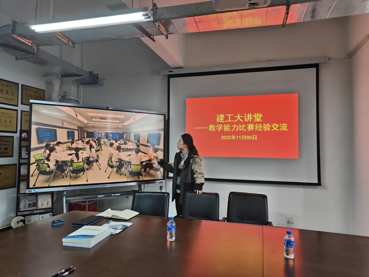 会议第二阶段为学院第三期 “建工大讲堂” ,由左婷老师分享参加省教学能力比赛经验。左老师结合团队参赛经历,从教学设计、课堂实施、参赛技巧等方面进行深入讲解,通过展示团队参赛资料,为全体教师提供了可借鉴的教学创新思路和参赛准备方法,对提升学院教师教学能力、深化教学改革具有重要参考价值