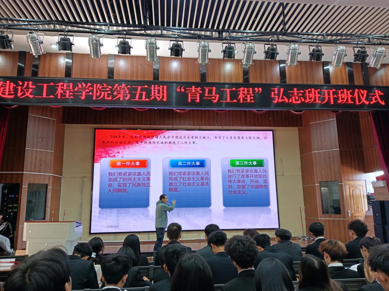 为加强对青年学子的党史学习教育,引导青年坚定理想信念、勇担时代使命。2025年12月2日,澳门信誉最好十大平台第五期“青马工程”弘志班第一讲在光荣讲堂顺利举行。本次由学院党总支书记李洪香做主题宣讲,他以中国共产党党史为题,开展一场兼具思想深度、历史厚度与实践温度的专题授课。