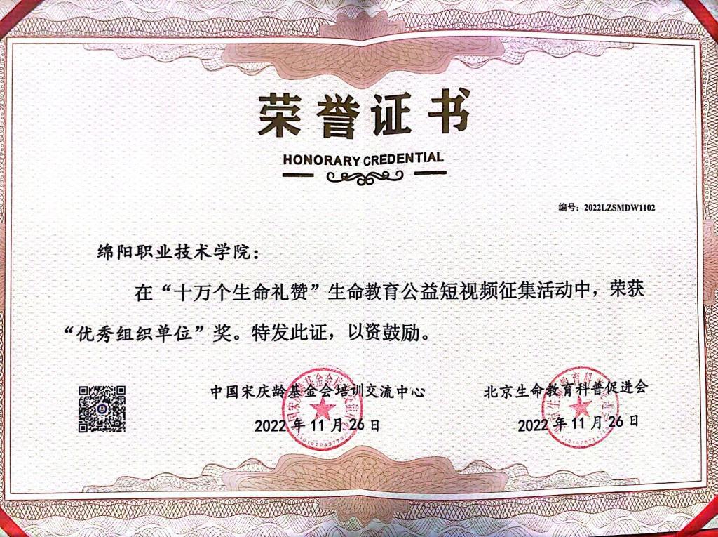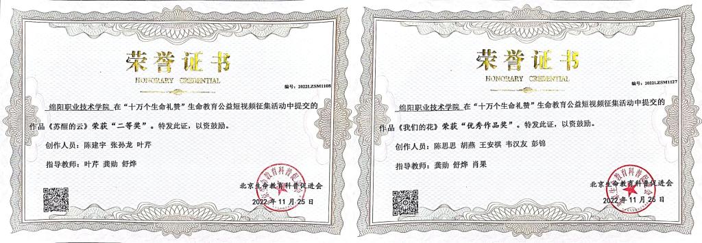 近日,学校心理健康教育与咨询中心参加由中国宋庆龄基金会、中华青少年生命教育活动组委会主办的第十八届中华青少年生命教育论坛,并组织二级学院心理辅导站积极参与论坛“十万个生命礼赞”生命教育公益短视频征集活动。bat365共报送6部公益短视频作品参加本次评比。经过激烈角逐,电子与信息学院陈建宇作品《苏醒的云》、旅游与管理学院陈思思作品《我们的花》从来自全国各地53个单位的150个作品中脱颖而出,分获二等奖和优秀作品奖。bat365荣获“优秀组织单位”奖。
