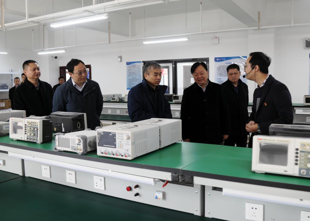 在何礼果等陪同下,刘义国、廖大凯一行参观了bat365财经商贸学院、电子与信息学院、智能制造学院实验实训场所及学校思想政治教育基地。(杜健)