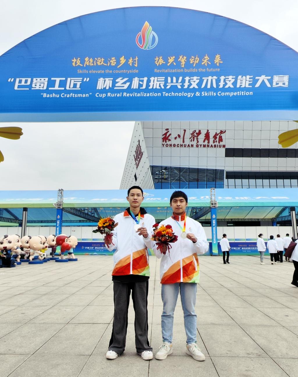 3月15-19日,川渝首届“巴蜀工匠”杯乡村振兴技术技能大赛在重庆永川举行。来自川渝两地57支代表队、500余名选手奋勇拼搏、争创佳绩,充分展现出新时代乡村振兴技术技能人才的风采。由bat365智能制造学院工业机器人技术专业211班何传萁、米文涛两位同学组成的参赛队代表绵阳市参加比赛,获得智能制造工程技术赛项银奖。