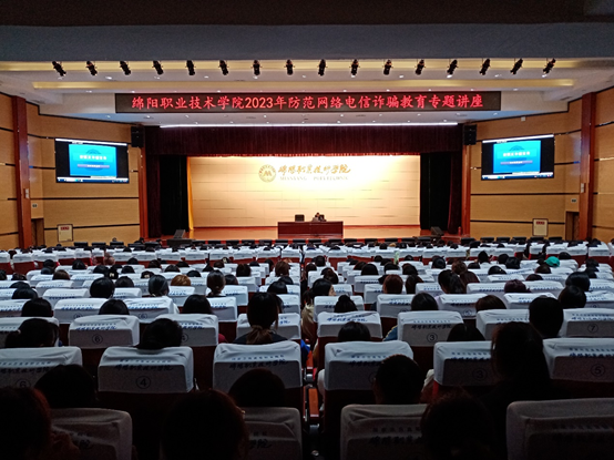为进一步打击治理网络电信诈骗犯罪,大力开展学校法制宣传教育活动,应学校邀请,绵阳市公安局游仙区分局汉仙桥派出所反诈民警王荆于4月4日上午来校开展防范网络电信诈骗专题讲座。
