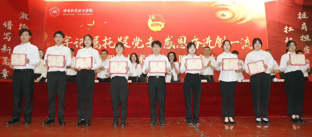 袁蓉在讲话中指出,过去一年,学校共青团组织听从党的召唤,服从党的安排,在团市委指导下,团结带领广大青年围绕学校中心工作,积极落实学校党政对青年工作的要求,全面加强团组织的思想引领、组织建设和成长服务等工作。广大青年师生在校园疫情防控、“三下乡”志愿服务活动、校园文化建设、技能竞赛、教学科研、“双高”建设等方面勇于担当,勤于奉献,创造了一项又一项佳绩,为学校的建设和发展作出了积极贡献。旅游与管理学院学生党支部通过“全国党建工作样板支部”验收,青年教师王文俪领衔的导游服务技能大师工作室荣获“绵阳市青年文明号”,一大批青年师生在教学能力大赛、各级各类技能大赛中获奖,展现出绵职青年的良好素质和责任担当。