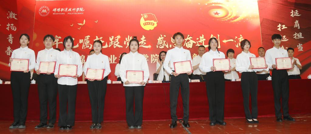 会上,党委常委、副校长张明宣读新团员名单并举行集体入团仪式;宣读各级表彰文件并进行现场颁奖。绵阳市青年文明号代表,bat365中文官方网站绵阳市王文俪导游服务技能大师工作室领办人王文俪和获奖集体代表,校团委委员、智能制造学院团总支书记刘英蝶进行交流发言。