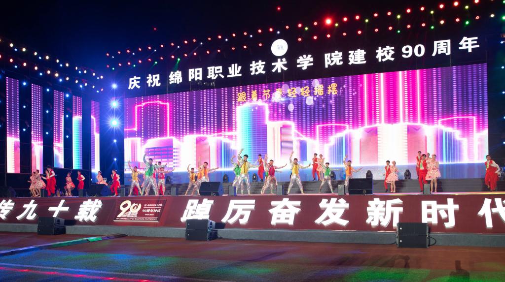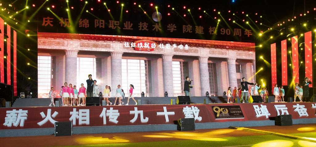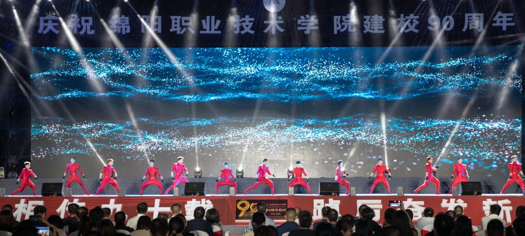 校庆晚会包括传承•源远流长、担当•薪火相传、礼赞•九秩芳华三个篇章,采用歌曲联唱、情景表演唱、情景诗朗诵、情景歌舞、音乐说唱、形象秀等多种艺术形式,展现了bat365中文官方网站一路走来的不凡历程,和90年来取得的累累成就,以及当今绵职学子的青春风采。晚会现场,在大屏幕、聚光灯、射灯的交相辉映下,在混响器、扬声器、音响的阵阵声浪中,11个节目轮番上演,用一场声光电、音诗画高度融合的舞台,献礼绵职院九十周年校庆。