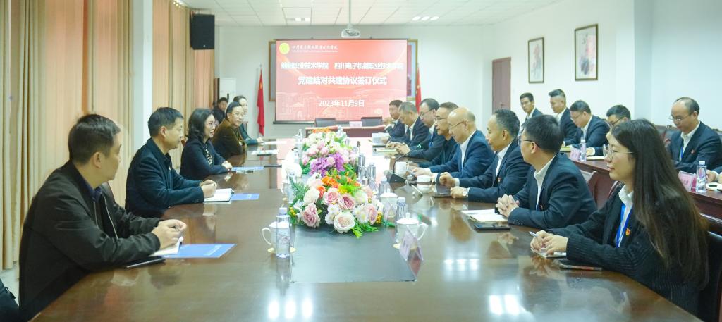 为深入学习贯彻党的二十大精神和习近平总书记关于高等教育工作的重要论述精神,坚持以高质量党建引领学校高质量发展,11月9日上午,党委书记袁蓉,党委常委、纪委书记沈利剑,学校党政办、组织部、宣传统战部负责人一行赴四川电子机械职业技术学院开展党建结对共建活动,并签署《党建结对共建工作框架协议》。