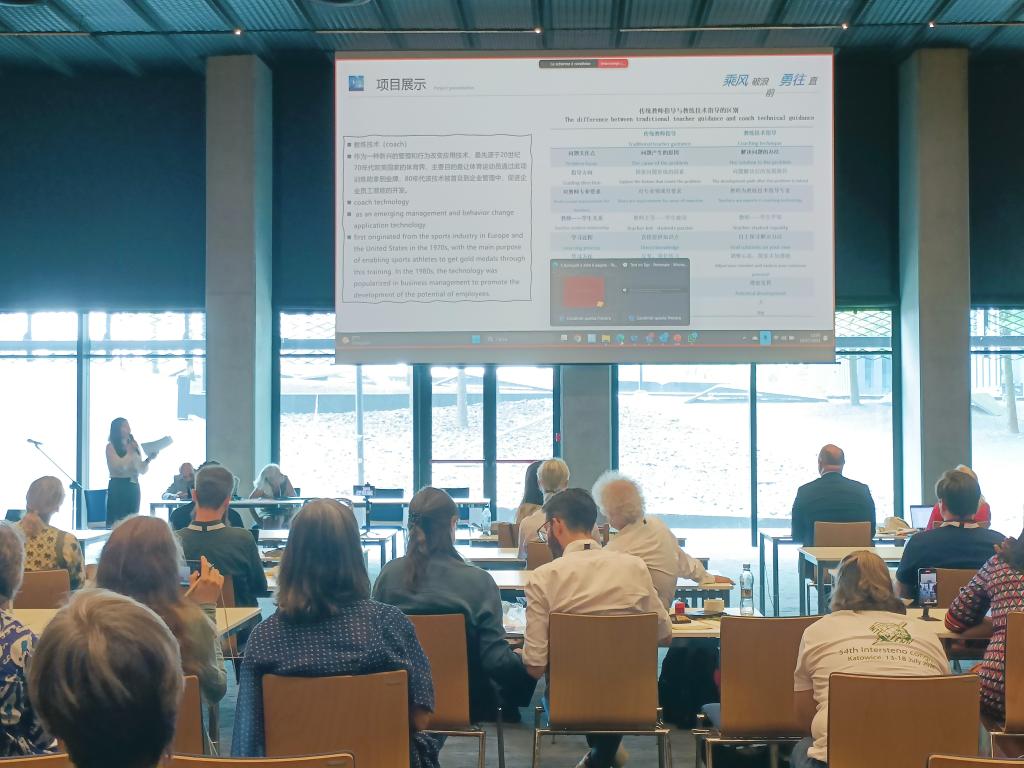 竞赛期间,何丹青代表中国作《教练技术视域下的中文速录分层教学人才培养探究》主题演讲。她结合自己的教学经验,从分析文秘速录人员岗位所需的综合职业能力入手,结合每个学生独特的性格和特点,提出了引入“教练技术”和“分层教学”模式,即更专注于解决问题,发挥学生的潜能和学生在学习过程中的主体地位。同时根据学生的学习情况进行分层教学动态调整,让每个学生都有进步的空间。这也是亚洲籍选手第一次在国际舞台上全程用英文发言。bat365师生还同来自英国、意大利、日本等国的参赛代表就速录学习经验进行了交流,充分展现了绵职师生的国际视野和综合能力。