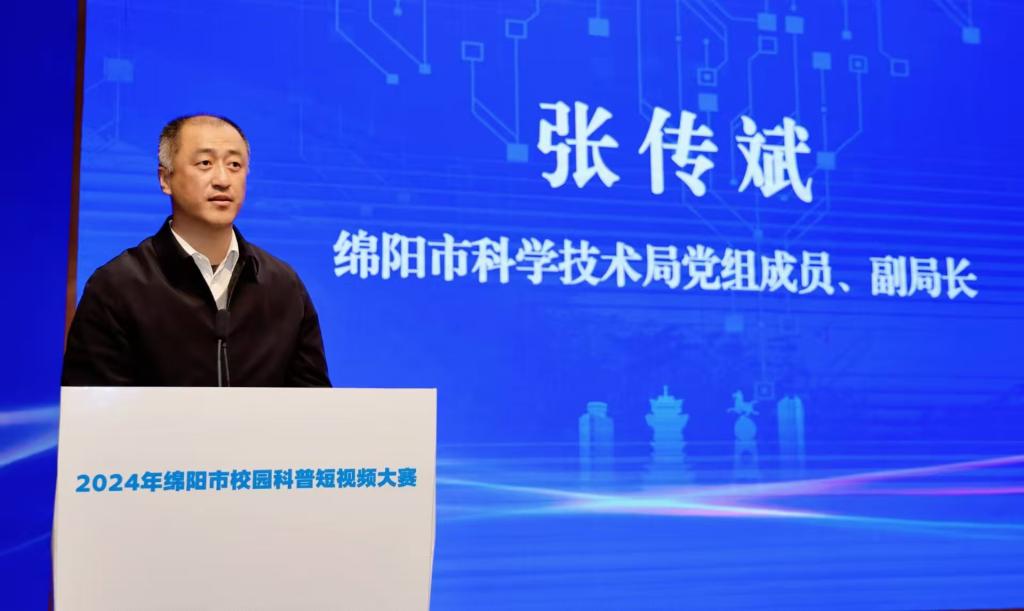 张传斌在讲话中表示,本次参赛作品内容丰富,形式多样,以独特的视角和生动的形式,展现了绵阳科技创新的蓬勃生机和独特魅力。希望通过比赛,点燃大学生们内心深处的科普创作激情,培育大学生的创新意识与创新思维,不断充实和壮大科普创作人才队伍,为科普事业的长远发展注入源源不断的新鲜血液。