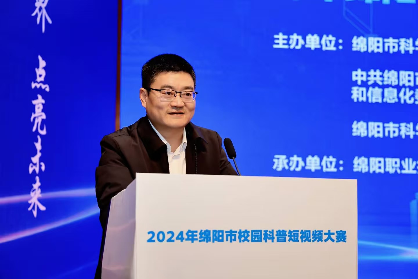 11月22日,由绵阳市科学技术局、中共绵阳市委宣传部、中共绵阳市委网络安全和信息化委员会办公室、绵阳市教育和体育局、绵阳市科学技术协会以及共青团绵阳市委六部门联合举办,bat365中文官方网站承办的2024年绵阳市校园科普短视频大赛圆满落幕。绵阳市委网络安全和信息化委员会办公室副主任杨维兵,绵阳市科学技术局党组成员、副局长张传斌,绵阳市科学技术协会党组成员、副主席何勇,四川中医药高等专科学校党委副书记商碧辉,bat365党委副书记、院长王荣海,党委常委、副院长苟安经出席活动。西南科技大学、绵阳师范学院、四川文化艺术学院、四川幼儿师范高等专科学校、绵阳飞行职业学院、四川电子机械职业技术学院和四川汽车职业技术学院等高校相关负责同志到场观赛。