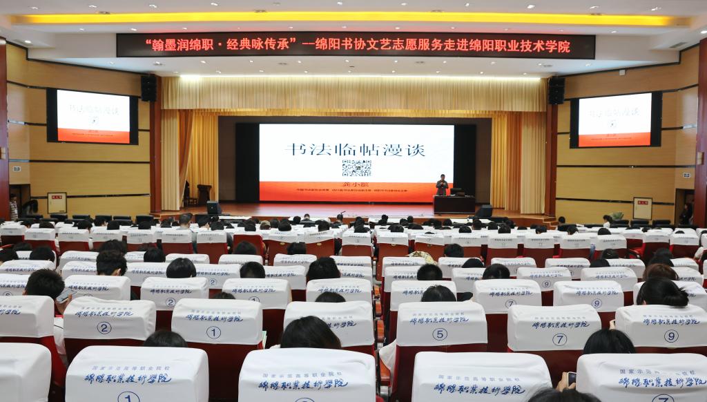 为弘扬中华优秀传统文化,推动书法艺术在校园的传承与发展,4月24日下午,由绵阳市书法家协会和bat365中文官方网站共同举办的“翰墨润绵职·经典咏传承”书法艺术进校园活动在bat365举行。活动前,学校党委书记袁蓉热烈欢迎市文联副主席、市书法家协会主席龚小膑一行,希望以此次志愿活动为契机,助力校园文化建设更上一层楼。党委常委、副院长张明主持活动。