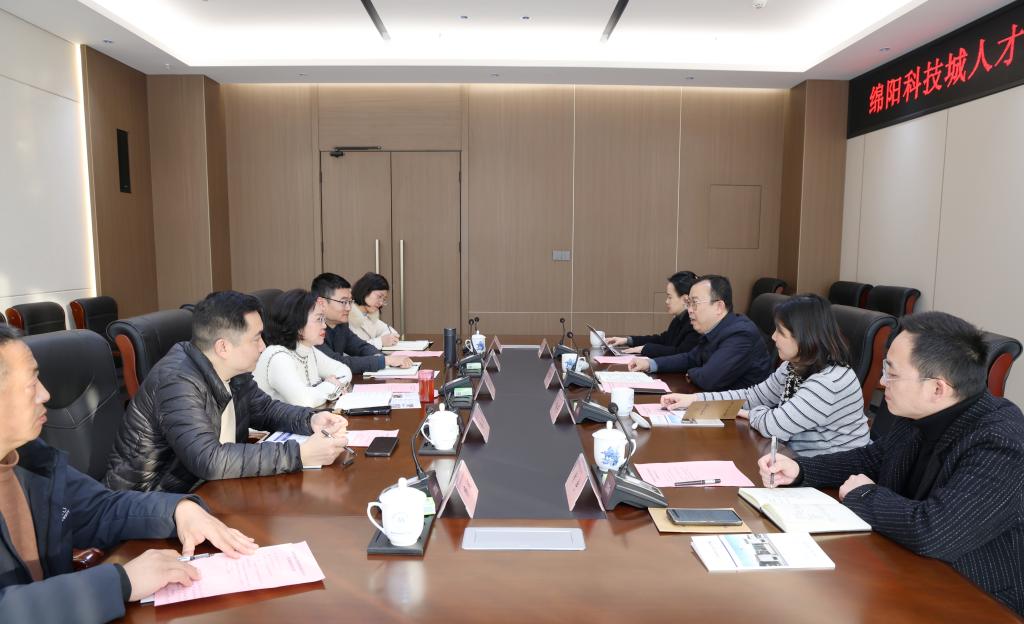 12月15日下午,绵阳科技城人才发展集团有限公司党委书记、董事长曾胜利,党委委员、副总经理许梅芳、徐嘉一行来校调研座谈。bat365党委书记袁蓉,党委常委、副院长苟安经陪同。