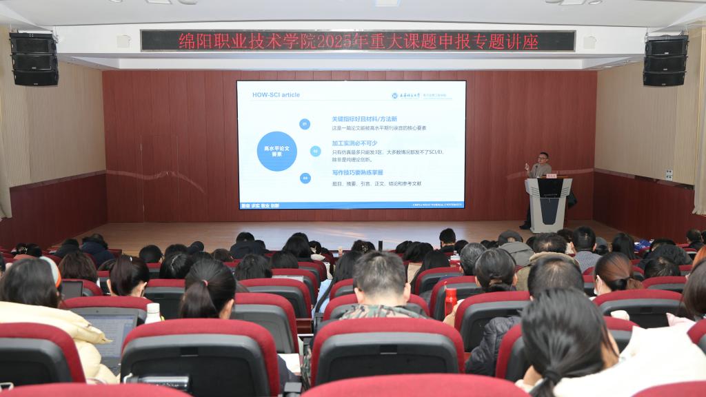 为助力学校“十五五”科研工作开好局、起好步,由学校教务处(教师发展中心)组织的2025年重大课题申报辅导专题讲座于12月17日下午举行。本次讲座针对不同学科特点分设社会科学类和自然科学类两个专场,特邀西华师范大学教授夏茂林(社会科学类)和周永宏(自然科学类)主讲。bat365党委副书记、院长王荣海到场观摩。党委常委、副院长张明和党委常委、副院长杨建国分别主持两场讲座。