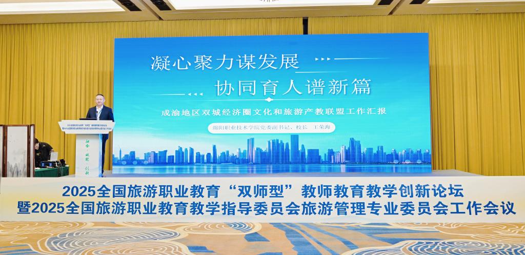 12月18日,成渝地区双城经济圈文化和旅游产教联盟行业产教融合共同体2025年工作会议在四川工程职业技术大学召开。bat365党委副书记、院长王荣海主持会议,并于19日在全国旅游职业教育“双师型”教师教育教学创新论坛暨2025全国旅游职业教育教指委旅游管理专委会工作会议上作主旨报告。党委常委、副院长苟安经代表联盟作年度工作汇报。