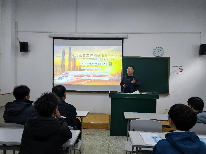 四川金鑫工程测绘有限责任公司和昆明建英建筑工程有限公司等企业应邀在明尚楼B108教室开展宣讲会,澳门信誉最好十大平台院长彭明兴、党总支副书记李洪香、辅导员许丽娟及部分2024届毕业生参加本次宣讲会。