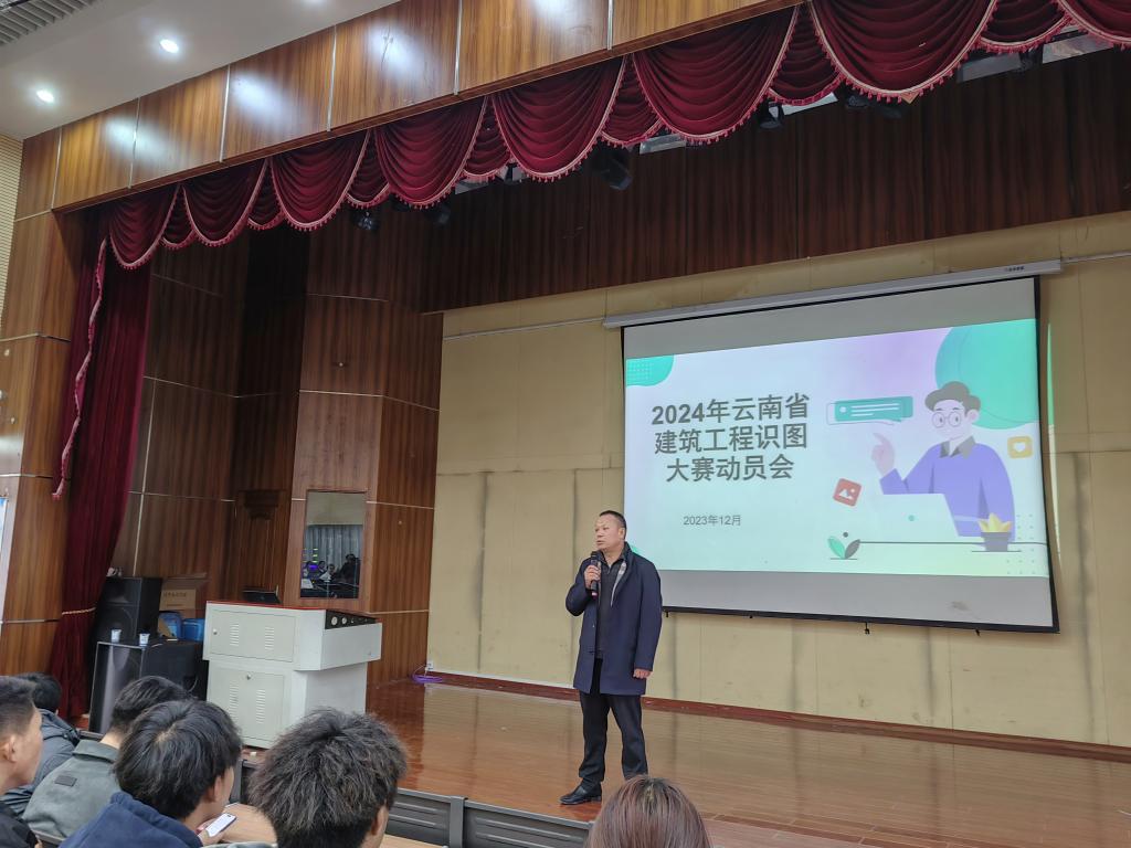 首先,彭明兴院长做了动员讲话,他向同学们强调了云南省建筑工程识图大赛的意义,鼓励同学们积极参加培训选拔,取得优异成绩,既为自己的学业和今后的工作增加砝码,也为学院、学校的发展增添光彩。