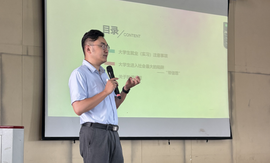 2024年6月12日,澳门信誉最好十大平台在光荣讲堂举办大学生就业(实习)法律风险识别与防范专题培训。培训对象为班干部及学生代表200余人。由学校发展规划处邀请云南恒矩律师事务所曹路明律师来校开展普法教育培训。