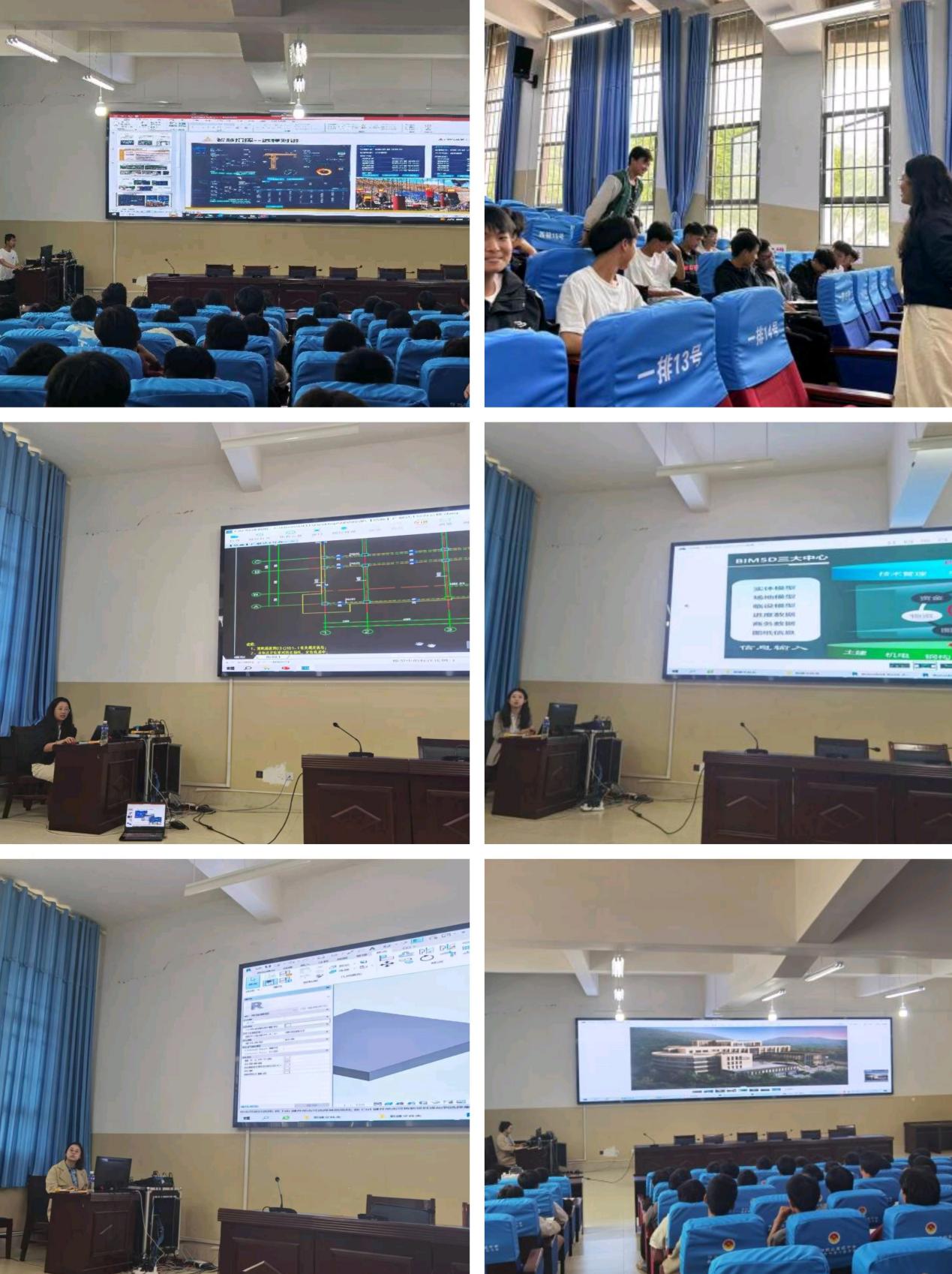 张凤婷老师讲解了BIM技术在建筑行业的应用,以澳门十大信誉网赌大全的教学楼和图书馆建筑为例,给学生演示了BIM模型。左婷老师介绍了施工现场数字化施工的应用前沿,并给学生展示了今年十大信誉学生参加第五届全国高校智能建造创新应用大赛总决赛数字化施工方案设计荣获一等奖的学生作品。王绮滢老师还原了生动的课堂,带给学生钢筋平法专业基础知识,并应用钢筋平法识图教学软件将学生难以理解的结构施工图以直观、立体的钢筋信息模型展现出来,并以在校学生做的建筑信息模型为例,展示了建筑信息技术在工程计量计价中的应用。另外,品茗科技股份有限公司工作人员给学生介绍了智慧工地、绿色工地。