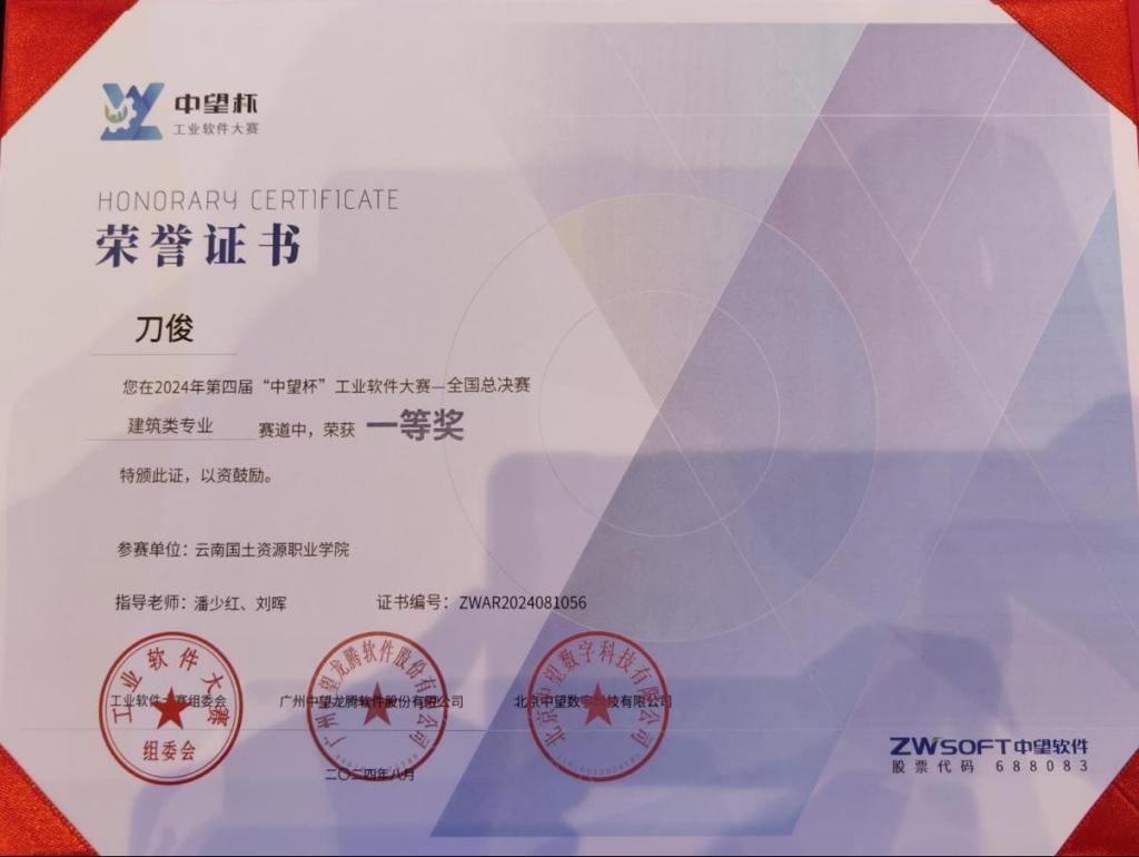 十大信誉学子刀俊同学(指导老师潘少红、刘晖)在第四届“中望杯”工业软件大赛高职组建筑类专业赛道中以全国第一名的好成绩荣获一等奖,平一梅同学(指导老师赵岩枫、孙永)获二等奖。本次比赛由广州中望龙腾软件股份有限公司、北京中望数字科技有限公司主办,据悉,本届竞赛吸引了来自国内30个省/自治区/直辖市的近800所院校的热烈响应,参赛学生人数超6600人。