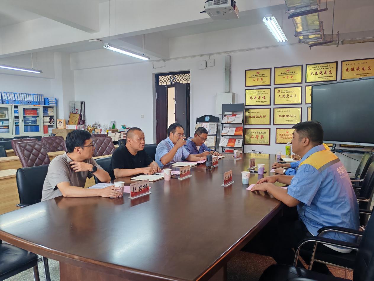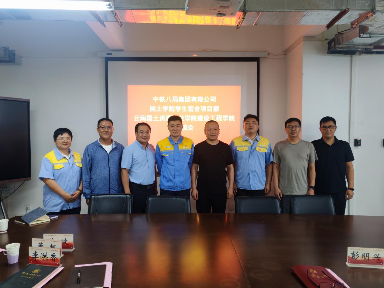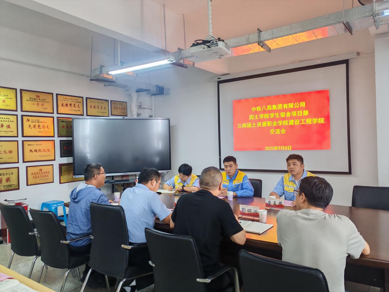 9月8日下午,澳门信誉最好十大平台与中铁八局集团有限公司国土学院学生宿舍项目部在明尚楼C301会议室举行校企合作交流座谈。中铁八局集团有限公司国土学院学生宿舍项目部经理庄孟周、书记董凯、办公室主任罗莎和学校后勤与基建服务中心副主任徐波、学院院长彭明兴、党委书记李洪香、副院长赵岩枫参加会议。会议由澳门信誉最好十大平台党委书记李洪香主持。