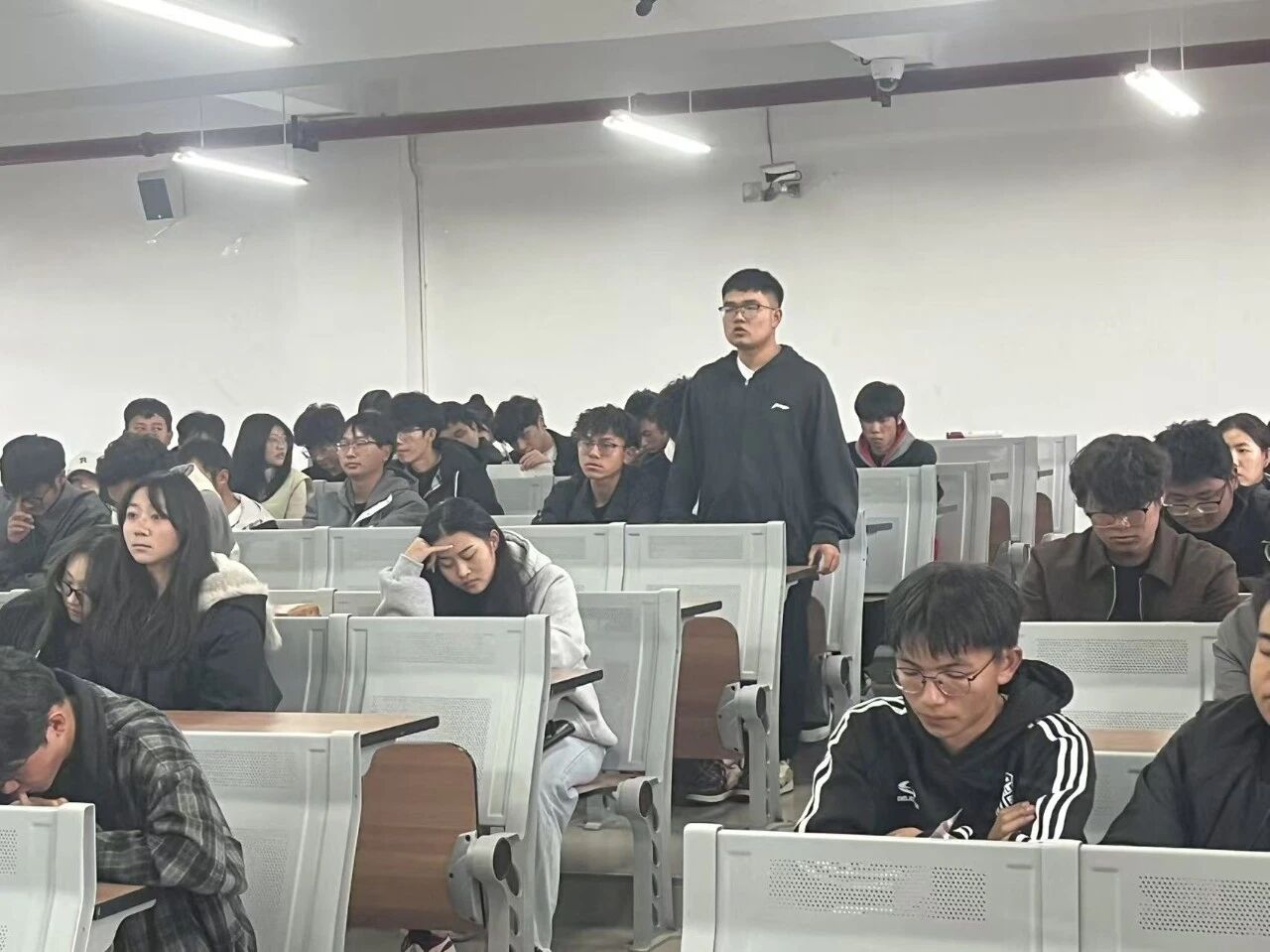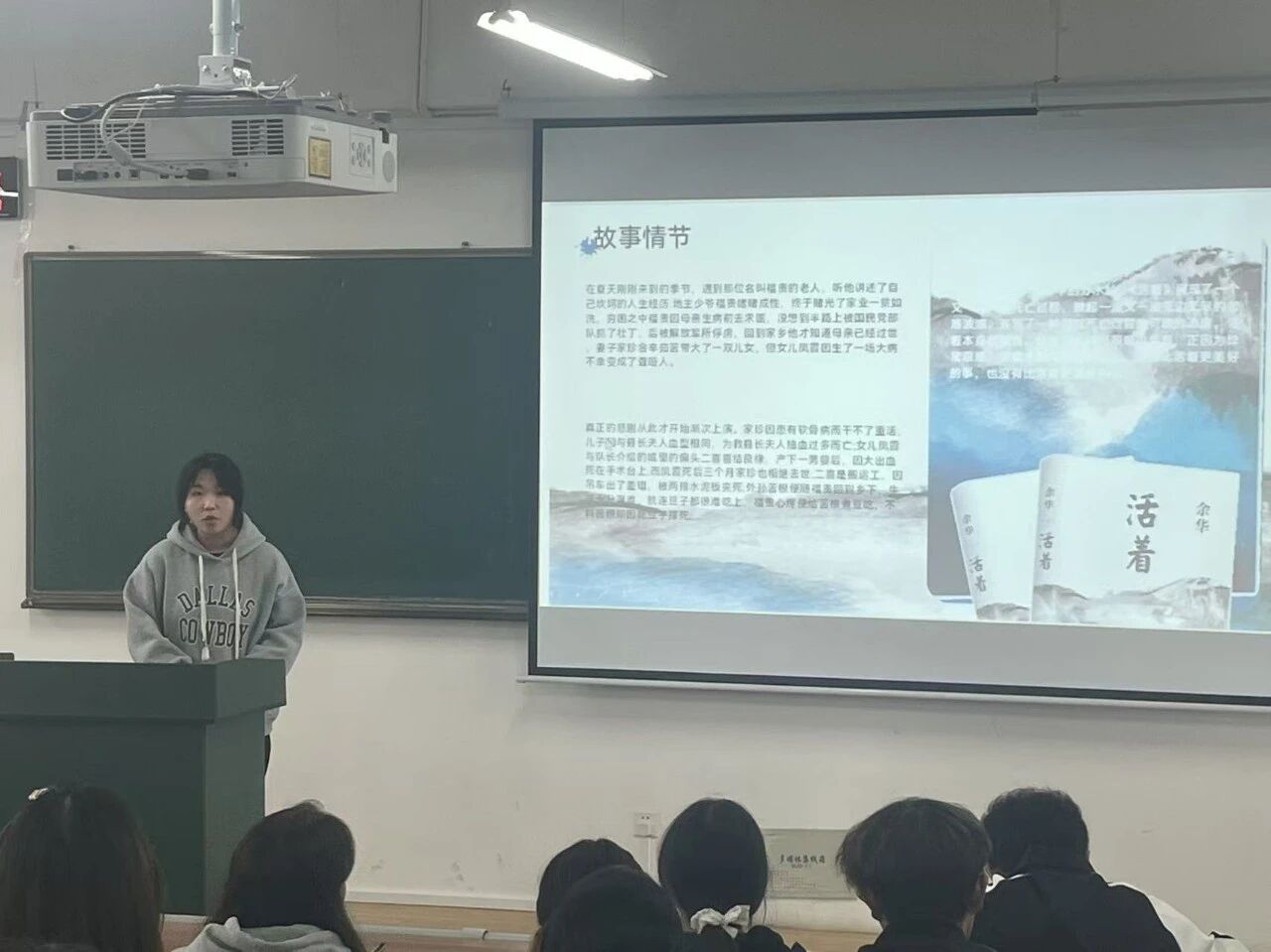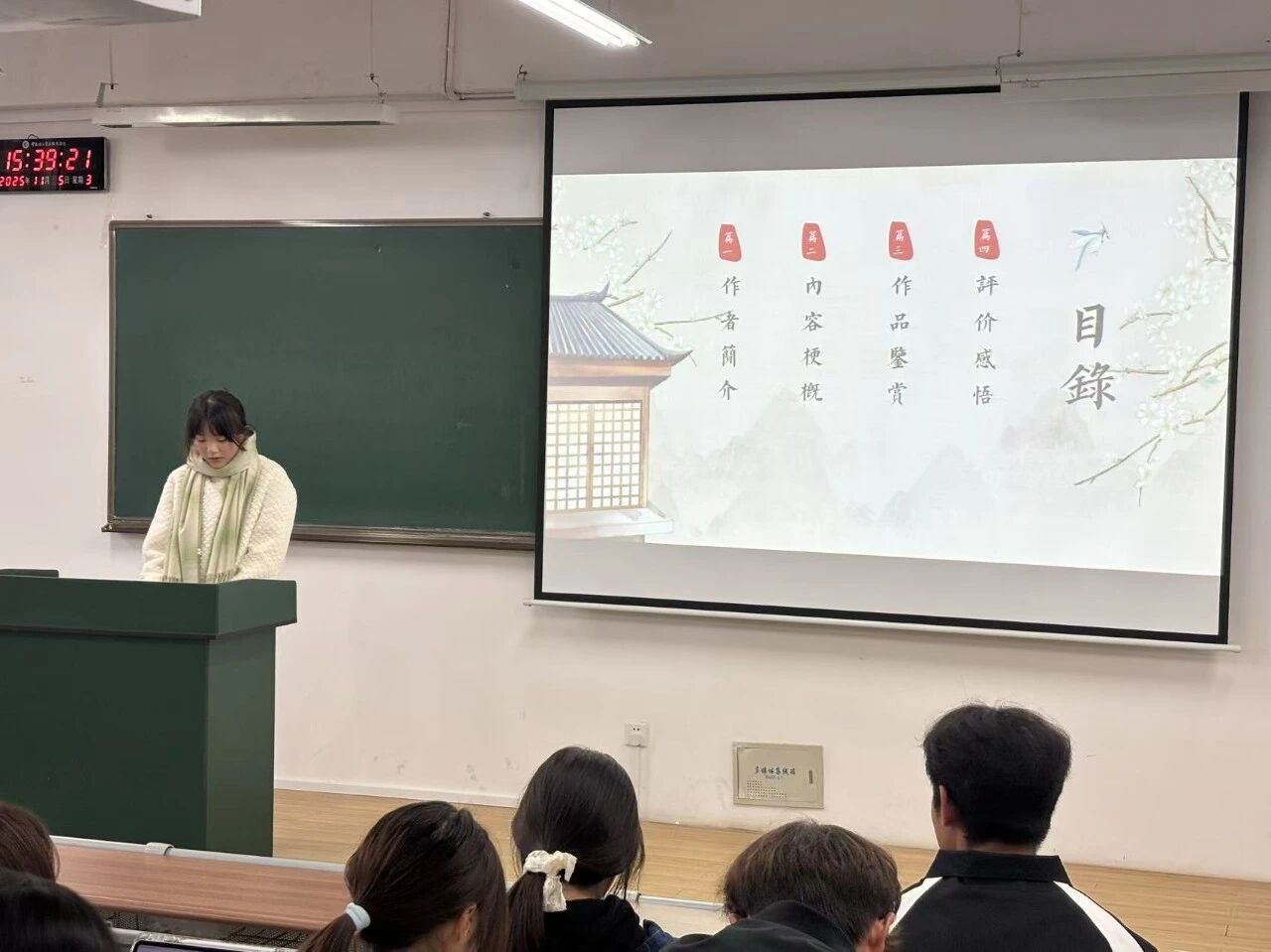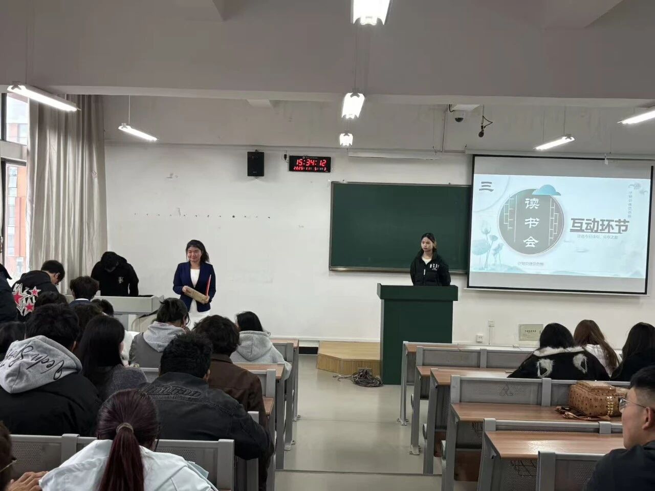 学生自主分享环节为活动核心亮点。同学们结合制作的PPT,有人分享《活着》一书,动容讲述福贵苦难中坚守生命的故事,传递“活着即力量”的感悟,让听众领会直面挫折的真谛;有人解读《习近平书信选集》,重点解读节选中习近平总书记对青年的寄语,结合“珍惜韶华、奋发有为”嘱托,融入思政教育,阐明青年责任担当;有人谈及《平凡的世界》,阐释平凡人在时代中坚守初心、拼搏的价值,让学子明白奋斗是青春的底色。同时现场还设置了互动交流环节,同学们踊跃提问、各抒己见,思想的火花在热烈探讨中激烈碰撞。