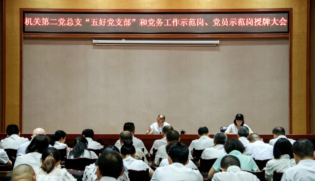 会议举行了“五好党支部”和党务工作示范岗、党员示范岗授牌仪式,对获得“五好党支部”的机关二第一党支部授牌。获得党务工作示范岗的蔡俊辉等3名同志接受授牌,获得党员示范岗的陈林等33名同志接受授牌。