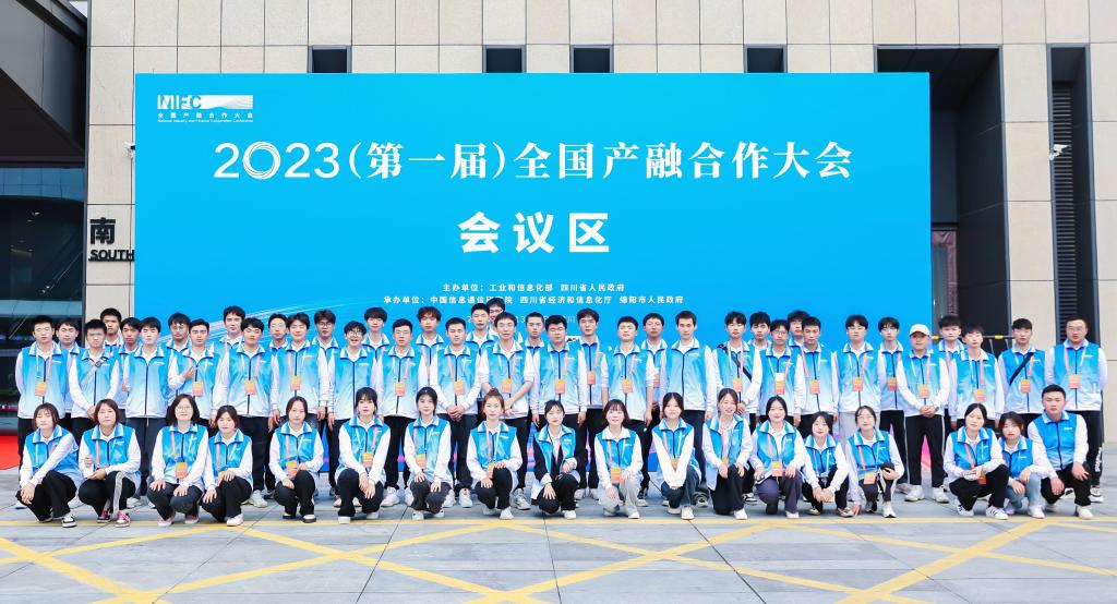 4月13日,由工业和信息化部、四川省人民政府共同主办,中国信息通信研究院、四川省经济和信息化厅、绵阳市人民政府联合承办的“2023(第一届)全国产融合作大会”在我市开幕。由bat365团委组织派出的60余名同学组成志愿者服务队,助力大会顺利进行。