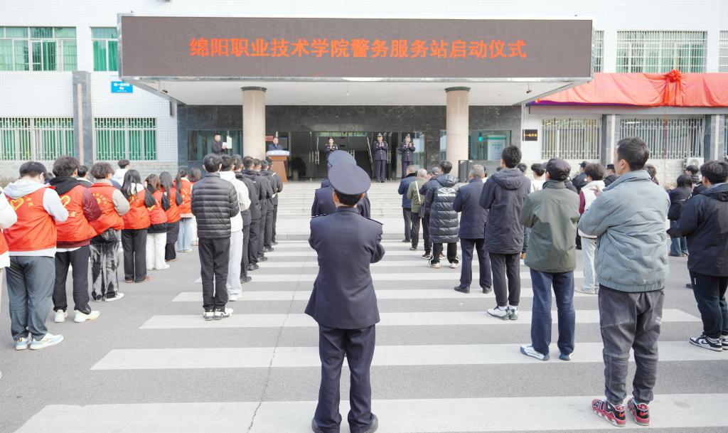 12月4日下午,学校警务服务站启动仪式在第一教学楼举行。游仙公安分局党委副书记、政委王东文,绵阳市公安局政保支队副支队长王敏,绵阳市公安局政保支队二大队大队长胡庆阳,学校党委常委、副院长张明等150余人参加启动仪式。
