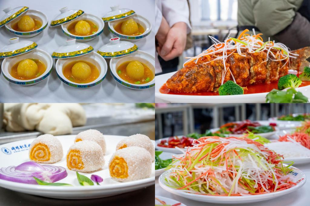 赛中,参赛选手们大显身手,纷纷拿出烹饪“绝活”,在中餐热菜、中式面点和刀工比拼三个项目中展现才艺。评委们从菜品的色泽、口感、营养、创意等方面进行了综合评判,评选出了中餐热菜、中式面点、刀工比拼一、二、三等奖及优秀奖。