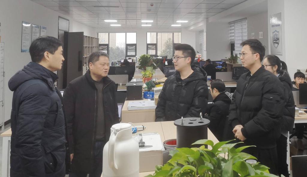 在奇石缘科技股份有限公司,杨建国一行看望了电子与信息学院黄元、施钦豪两位跟岗锻炼教师,详细了解两位教师在企业的工作生活情况。他希望校企双方要在现有产教融合项目的基础上,不断探索创新合作模式,持续开展全方位、多层次的合作,及时总结经验,努力形成具有示范引领作用的典型案例,实现校企双方资源共享、优势互补、共同发展、共同进步的良好局面。