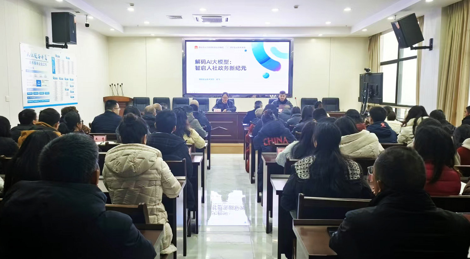 讲座分别以《解码AI大模型:智启人社政务新纪元》《解码AI大模型:智构乡镇数字政务新生态》为主题,旨在分享AI大模型前沿技术发展与实践经验,提升基层工作者数字素养,探索智慧政务治理新模式。讲座中,杨飞通过理论阐释与政务办公场景化演示,系统拆解AI大模型技术内核,针对基层政务痛点,结合人社政务与乡镇政务特点提出数字化参考方案,助力培育既懂政务治理又通数字技术的“新质干部队伍”。讲座为相关部门“数智化”政务提供了技术支持与人才培养,为人社政务治理与乡村振兴注入强劲技术动能。杨飞还与现场基层工作人员进行了互动交流,解答了他们在实际工作中遇到的问题和困惑。