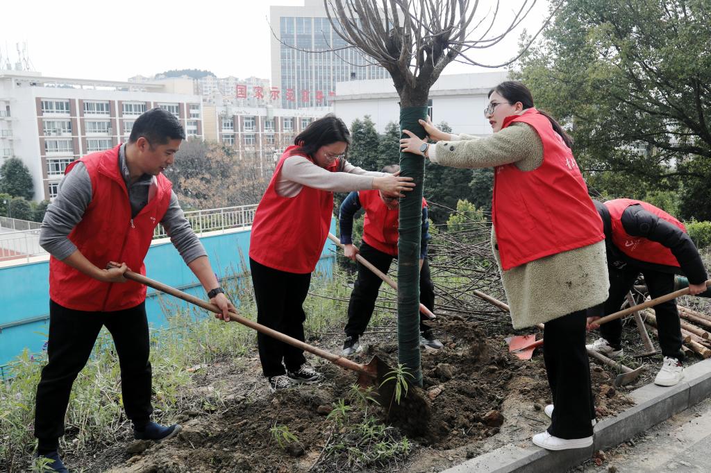 为深入贯彻绿色发展理念,推动党建工作与校园生态文明建设的深度融合,3月11日下午,后勤与基建管理处党总支开展了“党建引领聚合力,植树护绿当先锋”主题党日活动,组织党员干部在校园进行义务植树,党总支20余名党员同志参加活动。