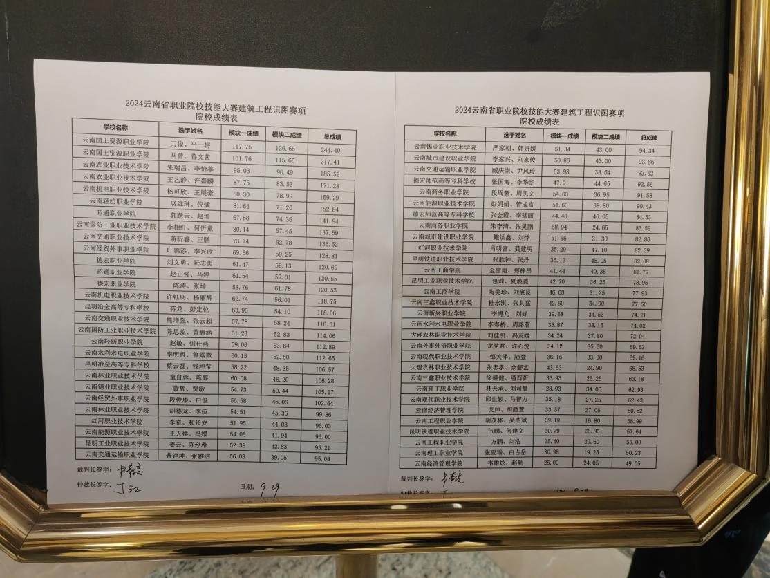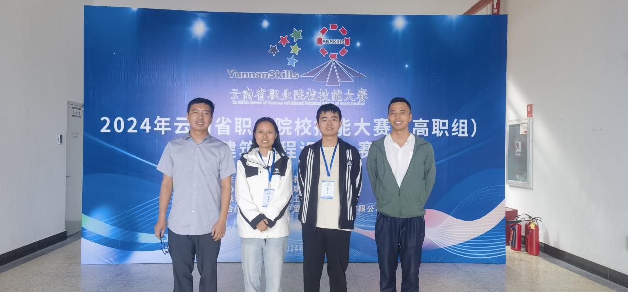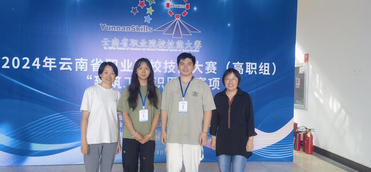十大信誉学子刀俊、平一梅(指导老师潘少红、刘晖),马曾、善文茜(指导老师赵岩枫、孙永)在2024年云南省职业院校技能大赛(高职组)“建筑工程识图”赛项中以全省第一名和第二名的成绩荣获一等奖。
