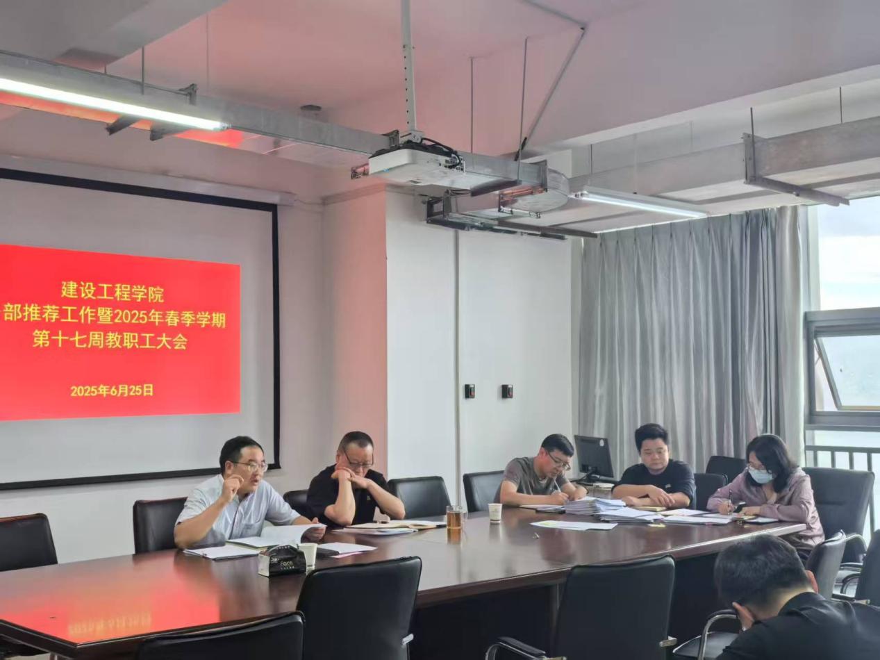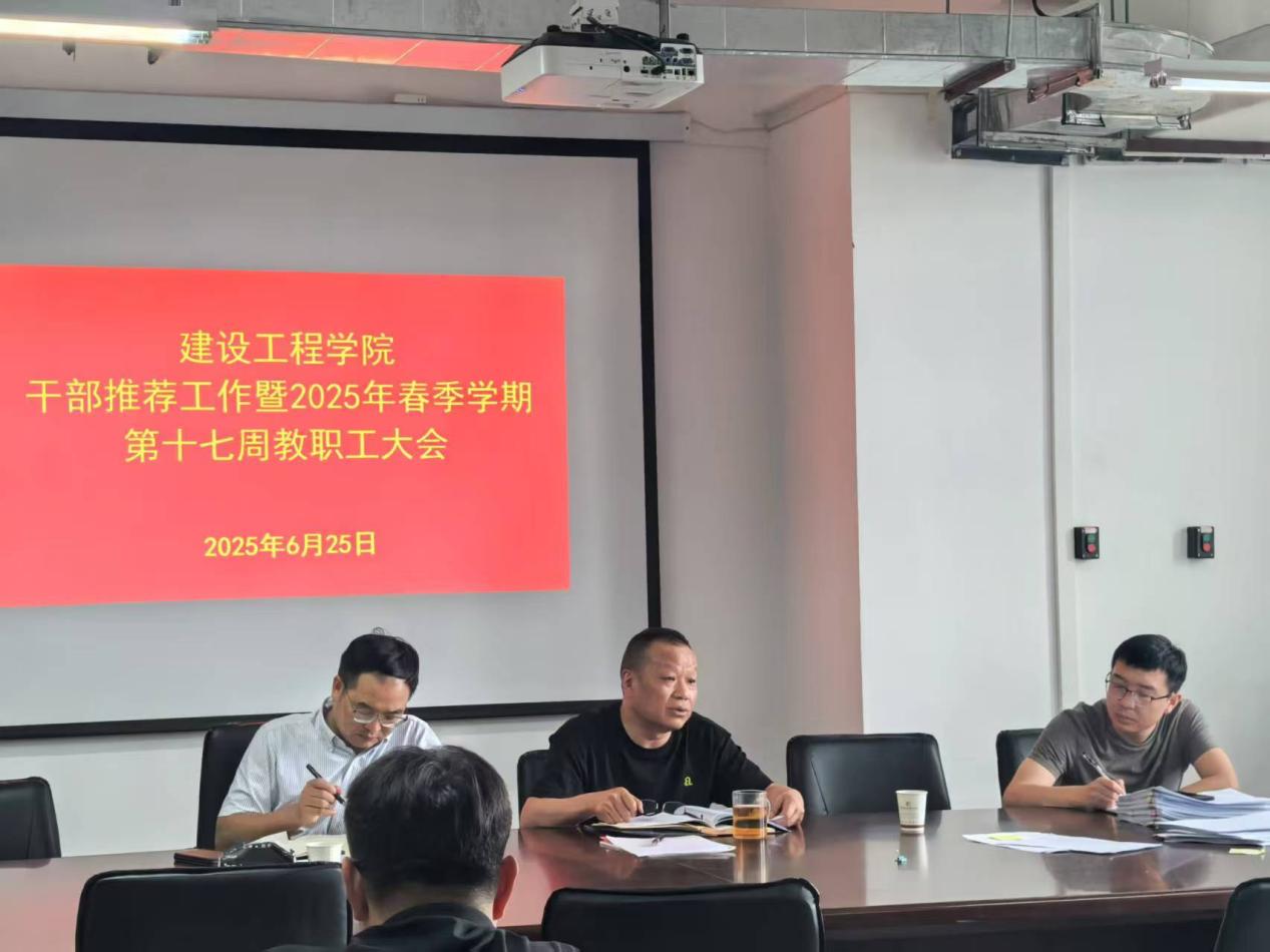 2025年6月25日下午,澳门信誉最好十大平台在明尚楼C301召开干部推荐工作会议暨2025年春季学期第17周教职工大会。学院联系校领导、副校长张云霞,职能部门干部考察组,以及澳门信誉最好十大平台全体教职工出席会议。会议由学院党委书记李洪香主持。