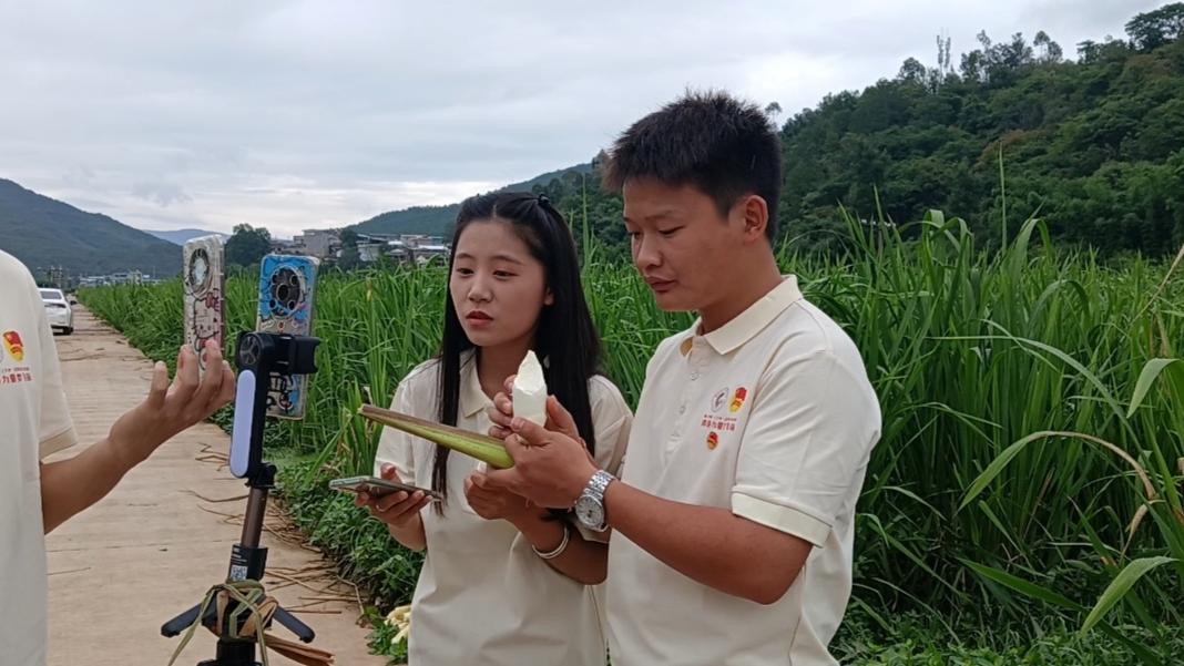 实践团走进高桥镇海子村茭白种植基地,通过当地官方账号与实践团账户同步开启直播助农活动。镜头下,成员们细致介绍茭白的生长环境、独特营养价值及多样吃法,并实时解答网友提问,以线上推广助力当地特色农产品走向更广阔的市场,为农户增收添力。