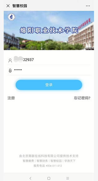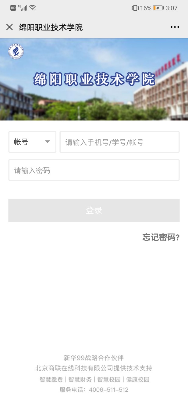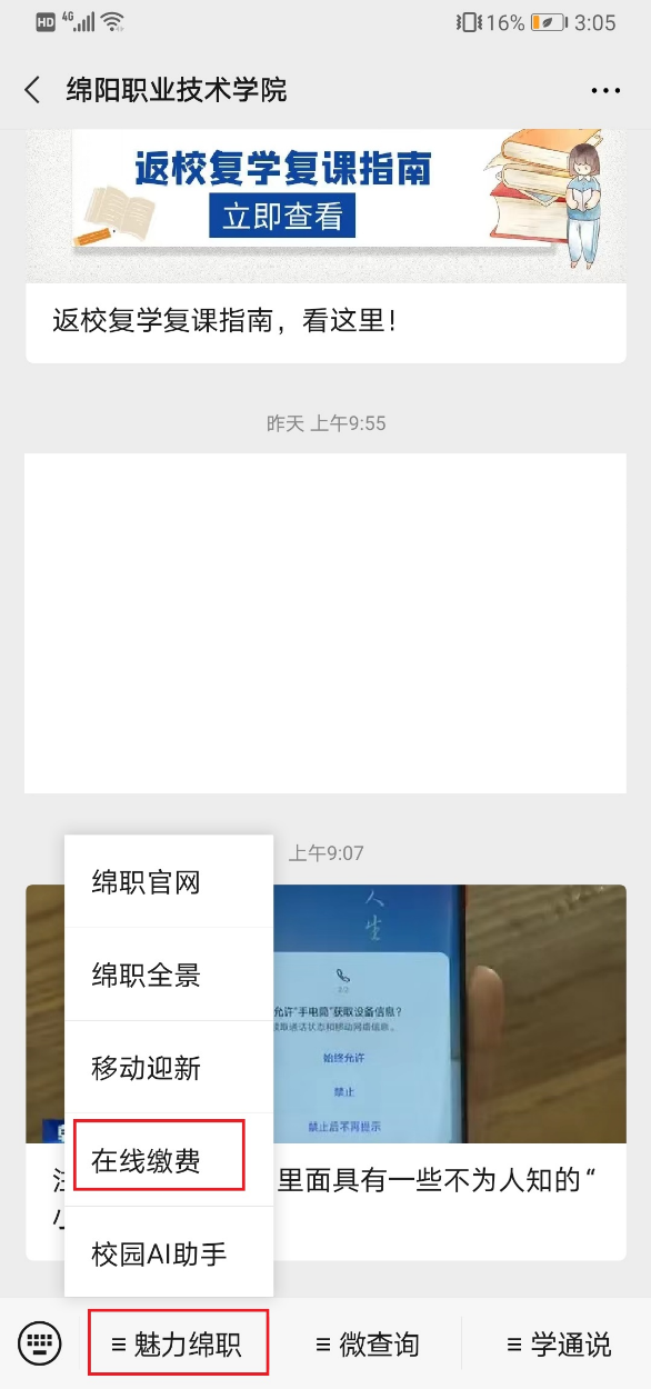 5、在“魅力绵职”上方列表中选择“在线缴费”,进入图6登录界面