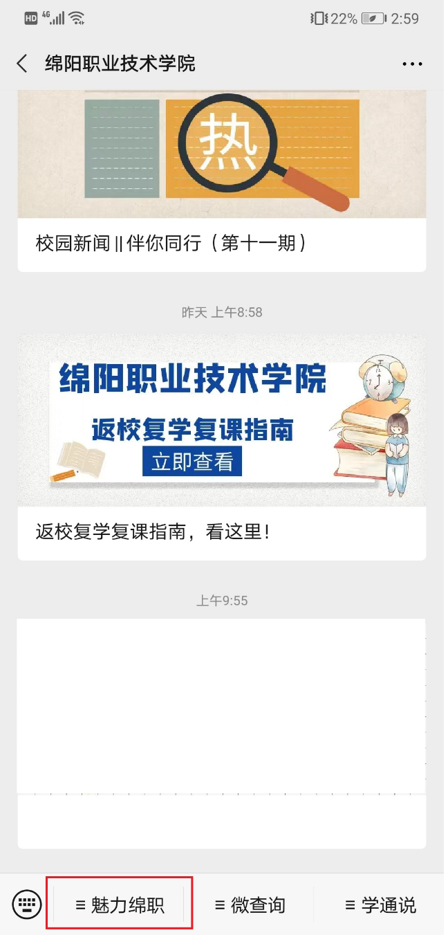 4、在“bat365中文官方网站”公众号首页下方,点击“魅力绵职”,进入图5界面