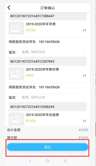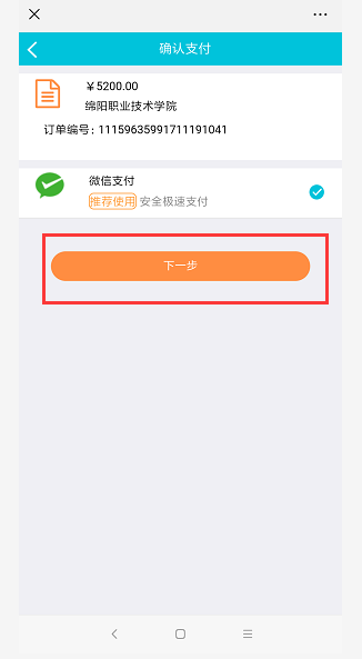 8、再次核对缴费金额及姓名,确认无误后,点击“提交”,在确认支付窗口点击“下一步”。