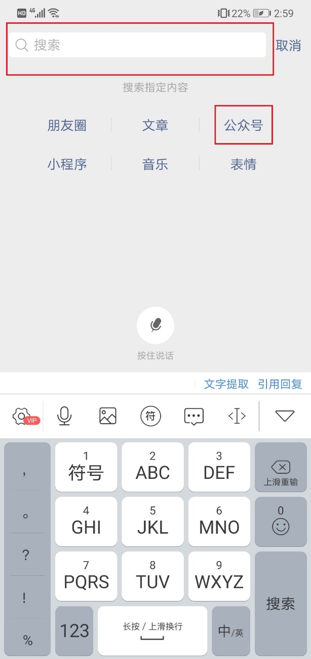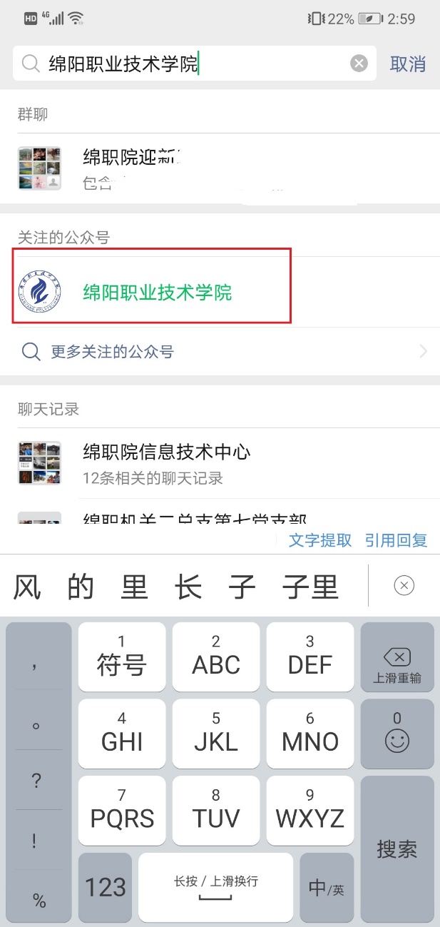2、在上方的搜索栏中输入“bat365中文官方网站”,选择公众号,进行搜索