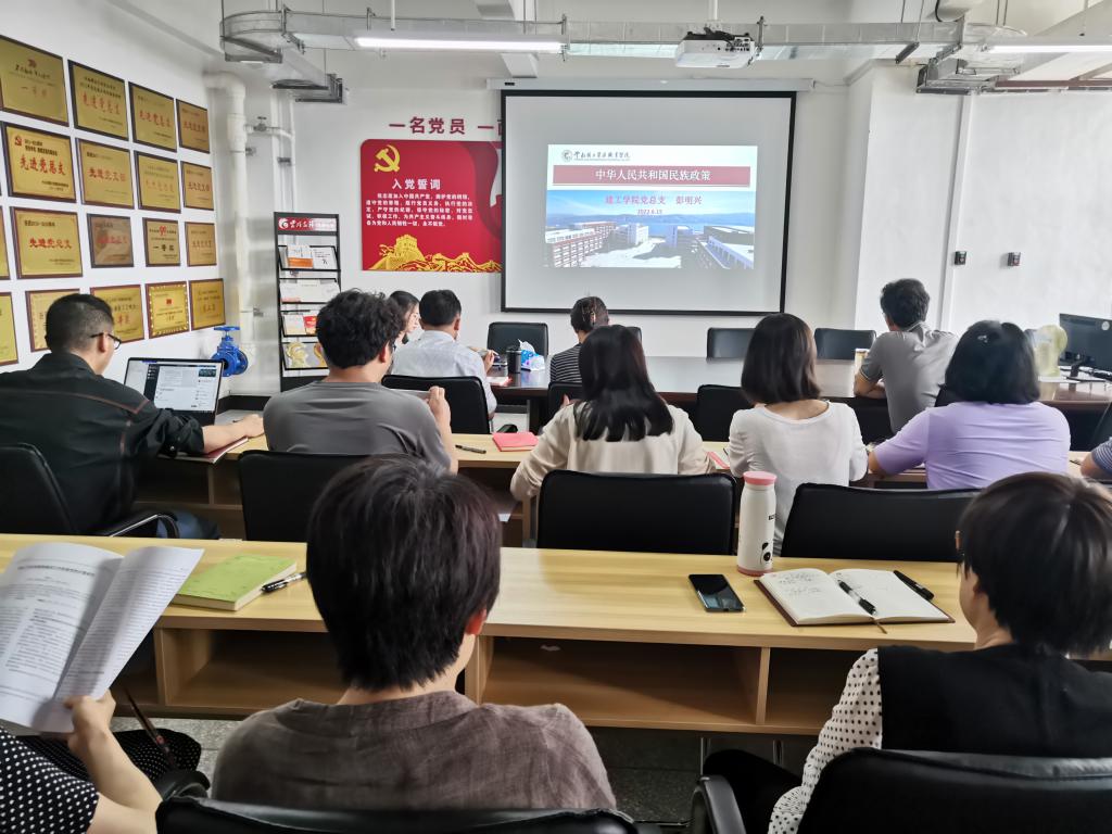 为学习宣传党的民族理论与民族政策,全面推进民族团结进步事业,2022年6月22日下午,澳门信誉最好十大平台在明尚楼C301会议室学习“中华人民共和国民族政策”专题党课。党课由澳门信誉最好十大平台院长彭明兴主讲,全院教师参加党课学习。