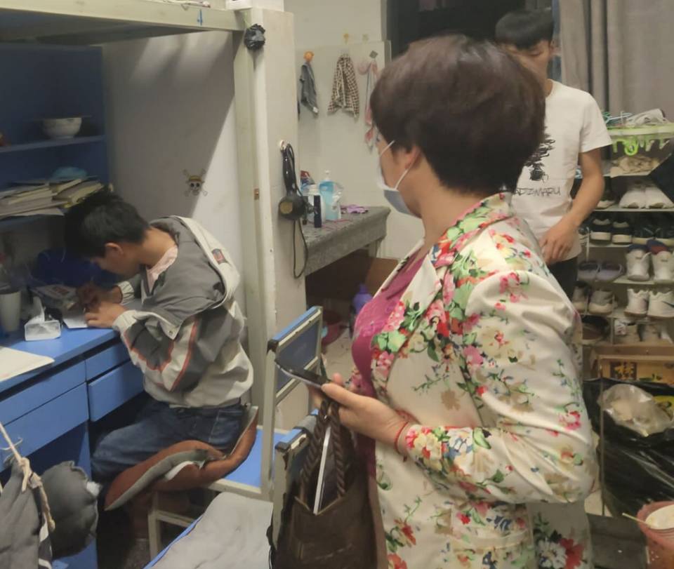 5月27日晚,国土澳门信誉最好十大平台党总支书记高昆老师、辅导员张宁老师与体温检测志愿者一同到学生宿舍为同学们测量体温。高老师来到19级每一间宿舍进行问候,与同学们悉心交谈,了解他们返校后的学习和生活状况,给予每位同学家人般的关怀。高老师还为同学们普及了防疫知识,告诫大家不随意聚集,不随意走动宿舍,并耐心解释周末不允许随意外出的原因,希望同学们理解并配合;叮嘱同学们要勤开窗、勤洗手、勤换口罩等。检测体温的志愿者们一丝不苟的为每位同学测量体温并认真记录。