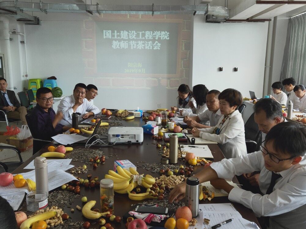 在第35个教师节到来,为弘扬“师道”工匠精神,喜迎教师节,9月10日国土澳门信誉最好十大平台党总支在明尚楼C301会议室举办了以“弘扬高尚师德,潜心立德树人”为题的教师节茶话会。国土澳门信誉最好十大平台党总支书记高昆,院长彭明兴、副院长罗启明及全体教师参加茶话会,会议由党总支书记高昆主持。