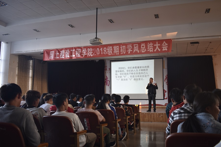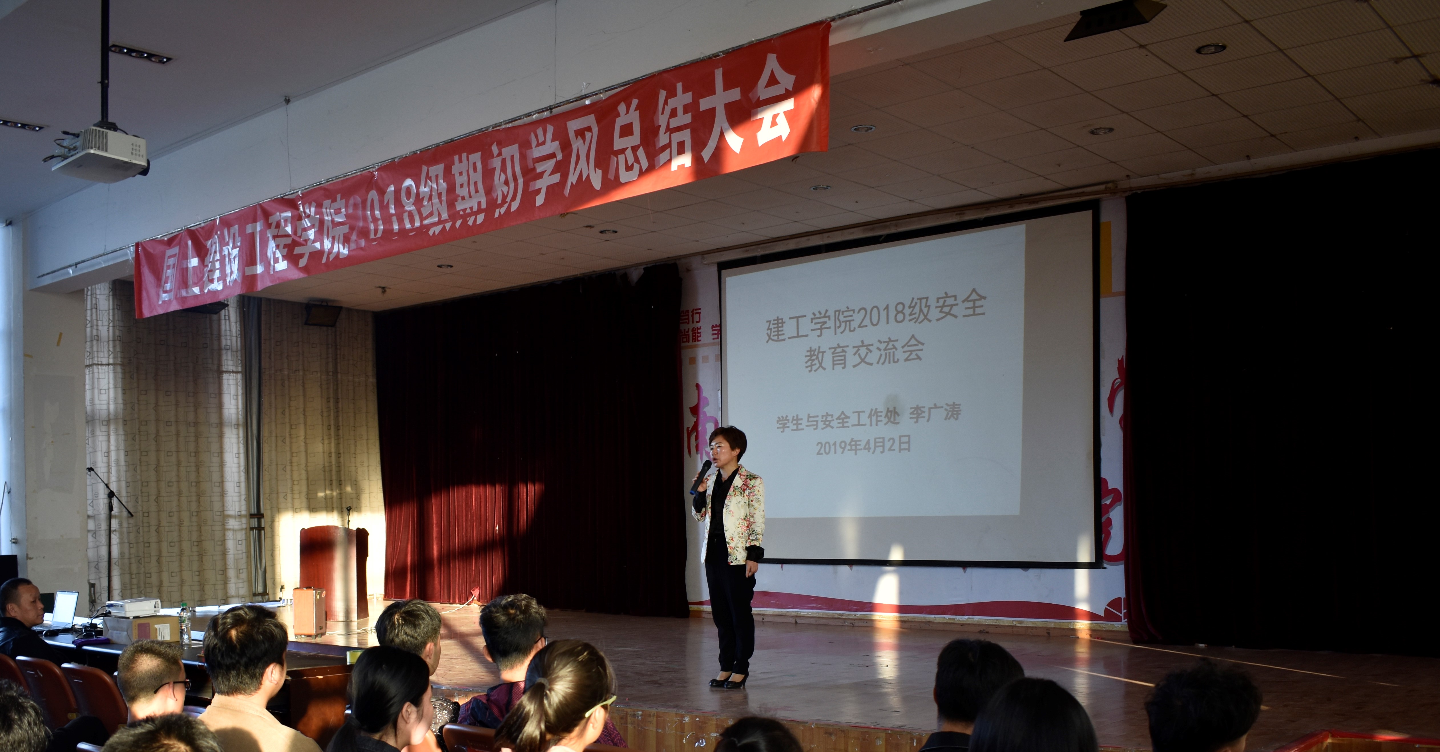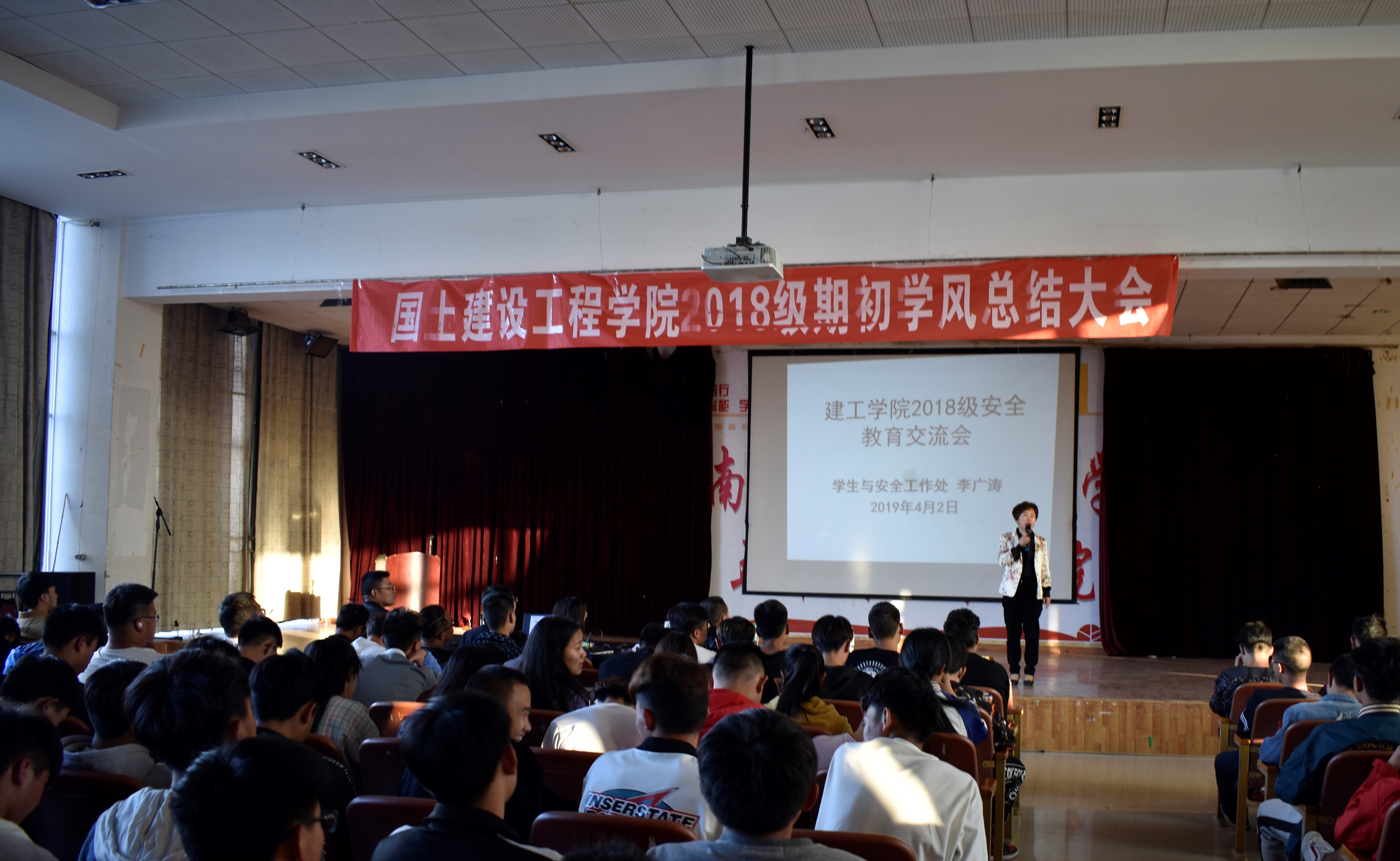 为促进十大信誉学风建设的深入开展,鼓励广大学生勤奋学习,形成良好的学习氛围。2019年4月2日18:30,建工学院在经开校区图科楼开展了学风建设阶段性总结大会,本次总结大会特邀请学生与安全工作处处长李广涛老师,建工学院院长彭明兴老师、学工办负责人杨寿鑫老师、辅导员霍冬芳、赵岩枫老师以及18级全体学生参加,本次总结大会由建工学院党总支书记高昆老师主持。