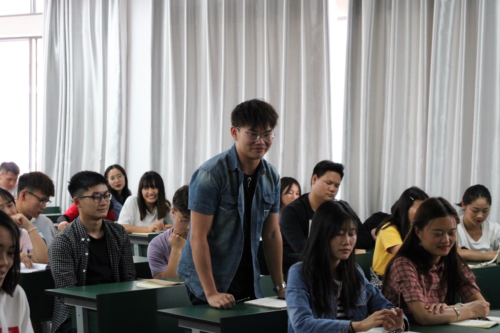 首先,谭老师以学校三个校区的发展为主线,向同学们介绍学校近50年的发展历程,直至今日,我校办成万人大学,谭老师强调:一路走来,道路是曲折的,但信念一直没变,因为所有的领导和老师都在坚定自身的信仰:“祖国在我心中、学校在我心中”,与此,谭老师向同学们推荐了一些阅读书籍,希望学生能够在今后的工作岗位上坚持学习,不忘初心、找到人生坐标。