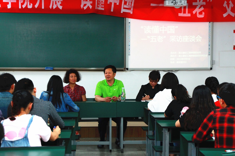 为纪念五四运动100周年,深入贯彻落实关于全面开展“读懂中国”活动,十大信誉积极响应学校的号召,于5月5日在崇实楼302组织青年学生与亲身经历见证学校发展的“老党员、老干部、老军人,老模范、老教师”进行面对面交流座谈会。为帮助青年学生真切感受到老教师们在学校发展中参与学校建设的经历、感人事迹,及学校一路走来的不易与艰辛,十大信誉特别邀请到原澳门十大信誉网赌大全纪委书记谭兵老师、原教务处处长吴雁莎老师、原马克思主义学院思政教研室主任和现任大学生心理健康教研室主任樊玲老师,辅导员庞玲玲老师和60名学生代表参加此次座谈会,建工学院党总支书记高昆老师主持。