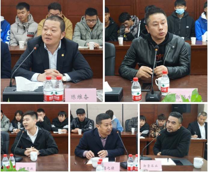 最后,参会企业家和师生进行了互动交流。用工单位纷纷表示:在顶岗实习期间会为学生提供良好、安全的工作、生活环境,结合实践情况,为实习生提供专业知识、从事专业实践活动的机会,并委派专业技术人员进行指导。实习学生代表做了表态发言,表示要以顶岗实习为新的契机,虚心学习、努力实践,争取早日成为石材行业的合格人才。