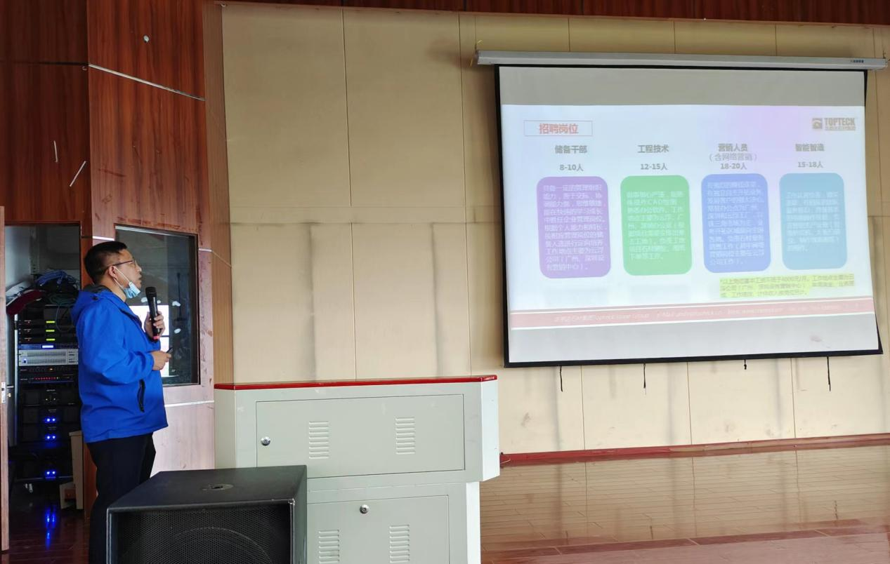 首先由云浮市石材行业协会常务副会长、广东龙美达石业有限公司董事长龚美华作了题为“石都云浮欢迎新石材人”的宣讲,他从云浮石材介绍、石材行业产业链、毕业生择业三要素、企业需要什么样的人才、社会路怎么走几个方面一一展开陈述,教同学们如何选择行业、选择企业、选择前进的方向。在此过程中,同学们了解到云浮石材加工已经有400多年的悠久历史,云浮全市共有石材企业6228家,涉及到的产业有矿山开采、工程项目应用、工程技术、智能制造、石材安装、晶面处理、石材养护等多个方面。